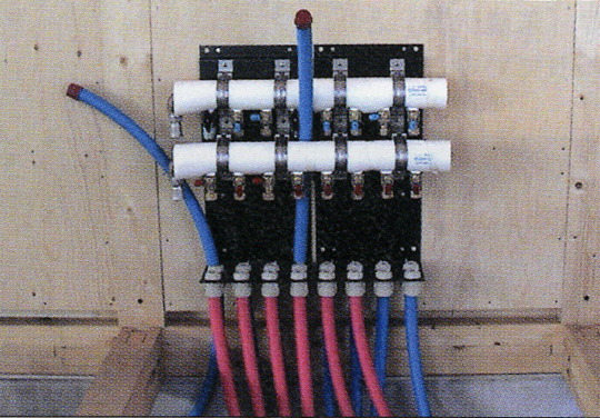 Be013の山根氏は、ご実家が設備工事業ということもあり、お父上の協力も得て、水回り、OMソーラーのお湯取り関係の配管をご自分でおやりになったという。 そこで、山根氏にさや管ヘッダー工法のポイントについてお伺いした。