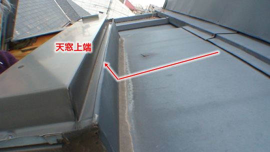 屋根からとび出た天窓のすぐ上に水がたまりやすくなるので、天窓の上に水がたまらないような傾斜をつけ、これをジャンプ台と呼ぶそうです。我家にもジャンプ台は設置されていまして、調べてみるとジャンプ台より高いところからも漏れています。