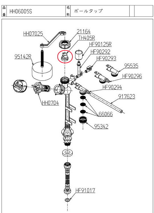 水が止まったところで、もう一度落ち着いて観察すると、ポールタップと呼ばれる部品の赤矢印のパーツ(ダイアフラム 図1)が壊れていた。